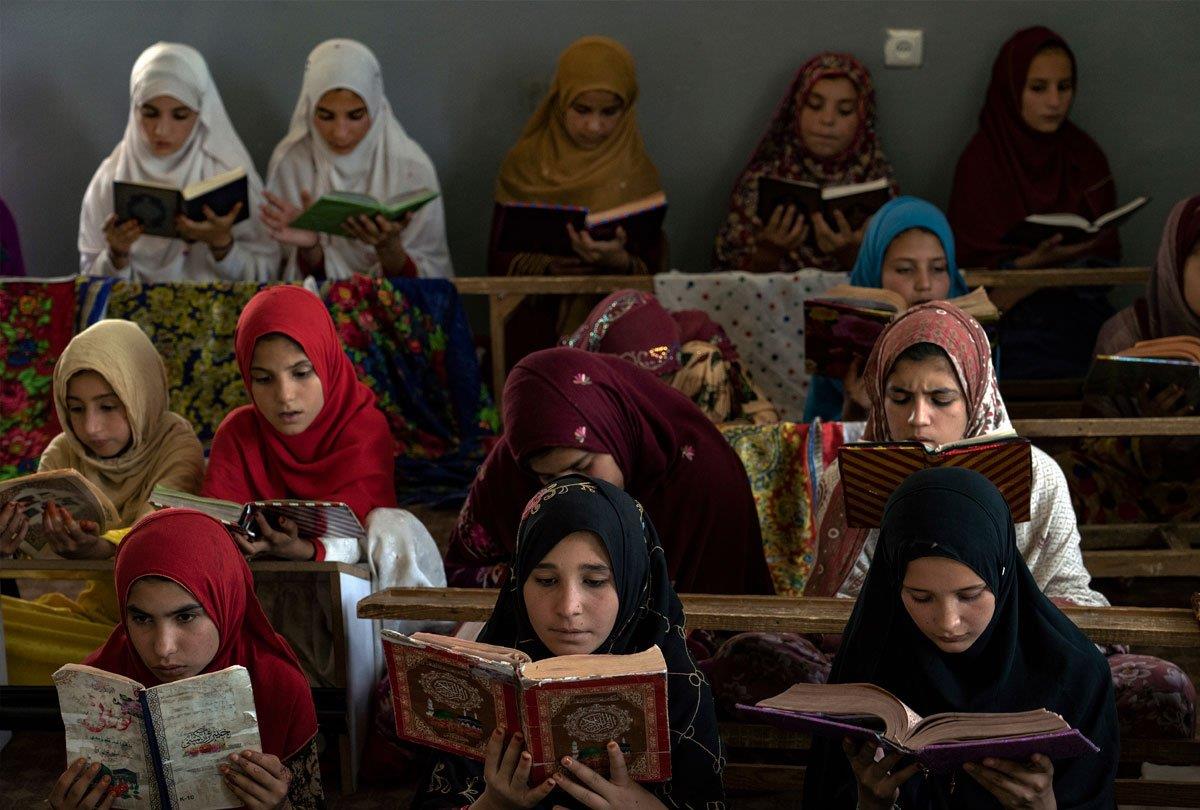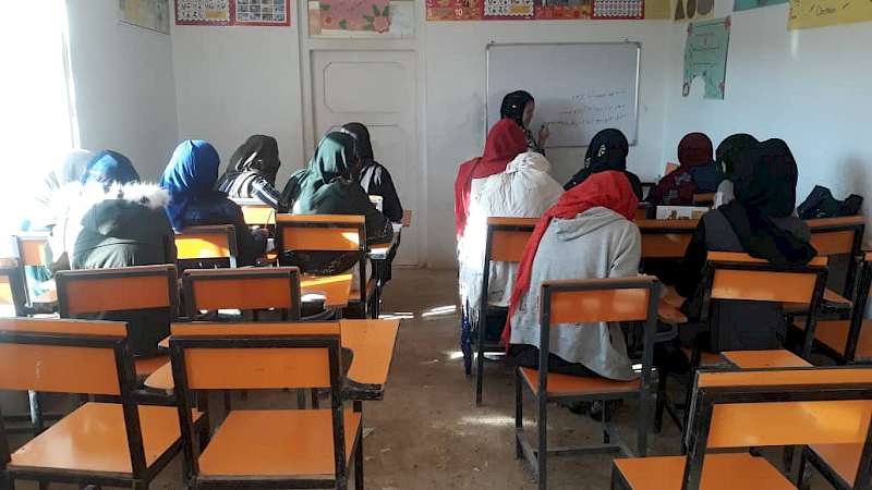 These classrooms operate quietly inside homes or safe community locations where students can gather in small groups to continue learning. Families often volunteer their homes to host these classes, while local female teachers provide instruction and guidance.